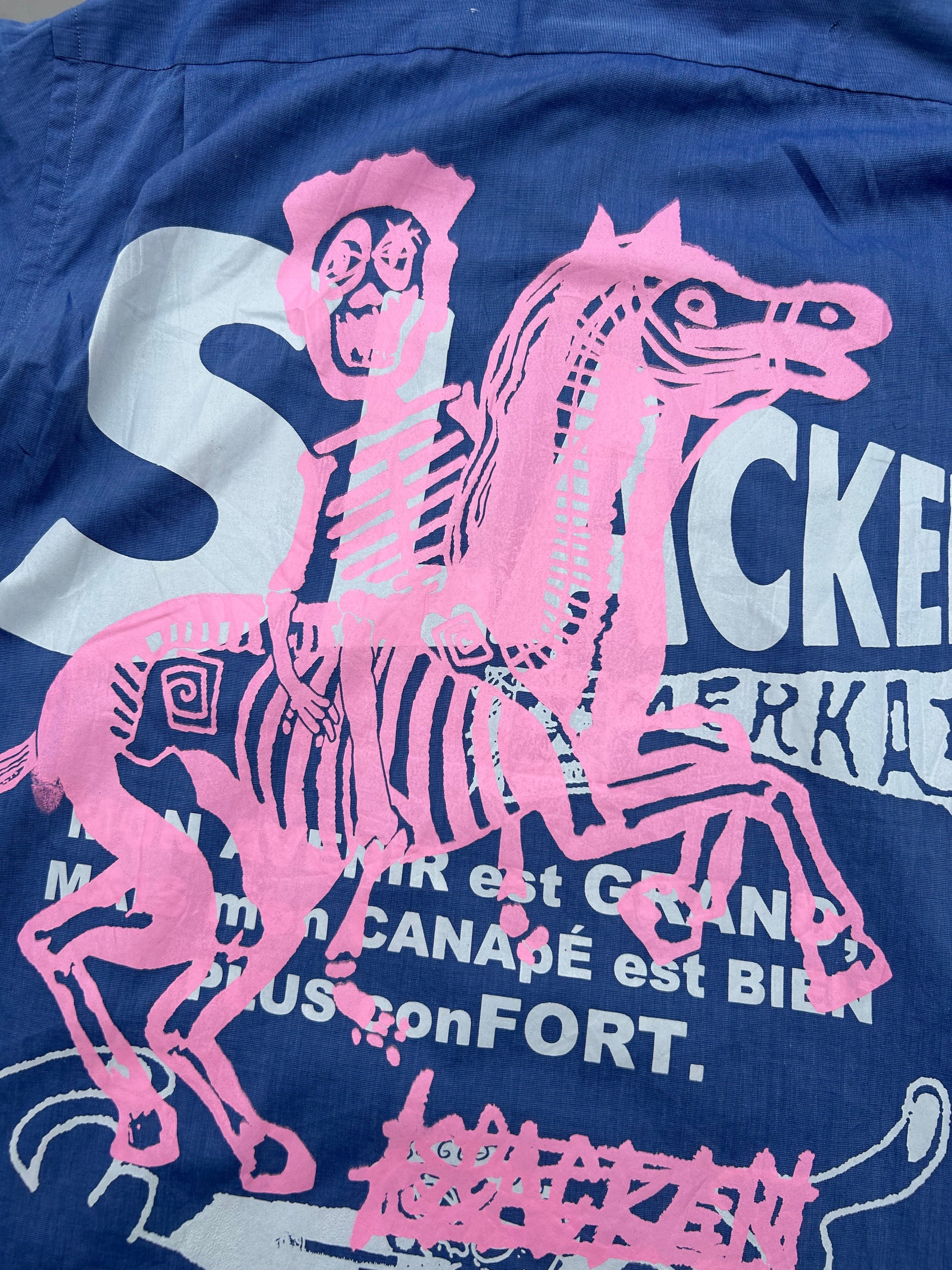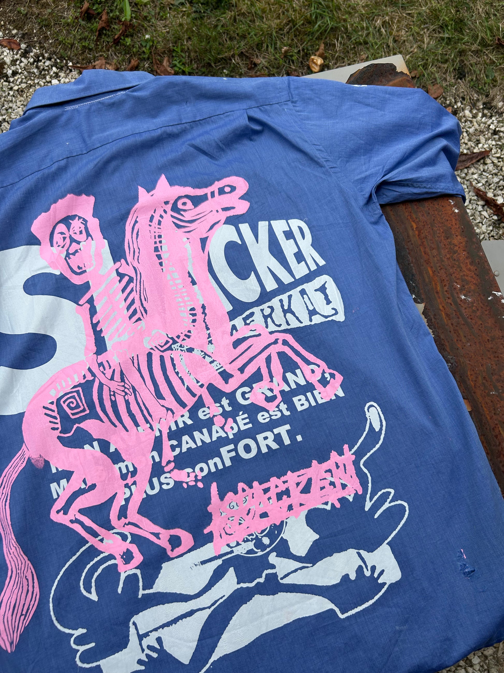 Une vraie chemise Slacker, récupérée, réinventée, sérigraphiée.