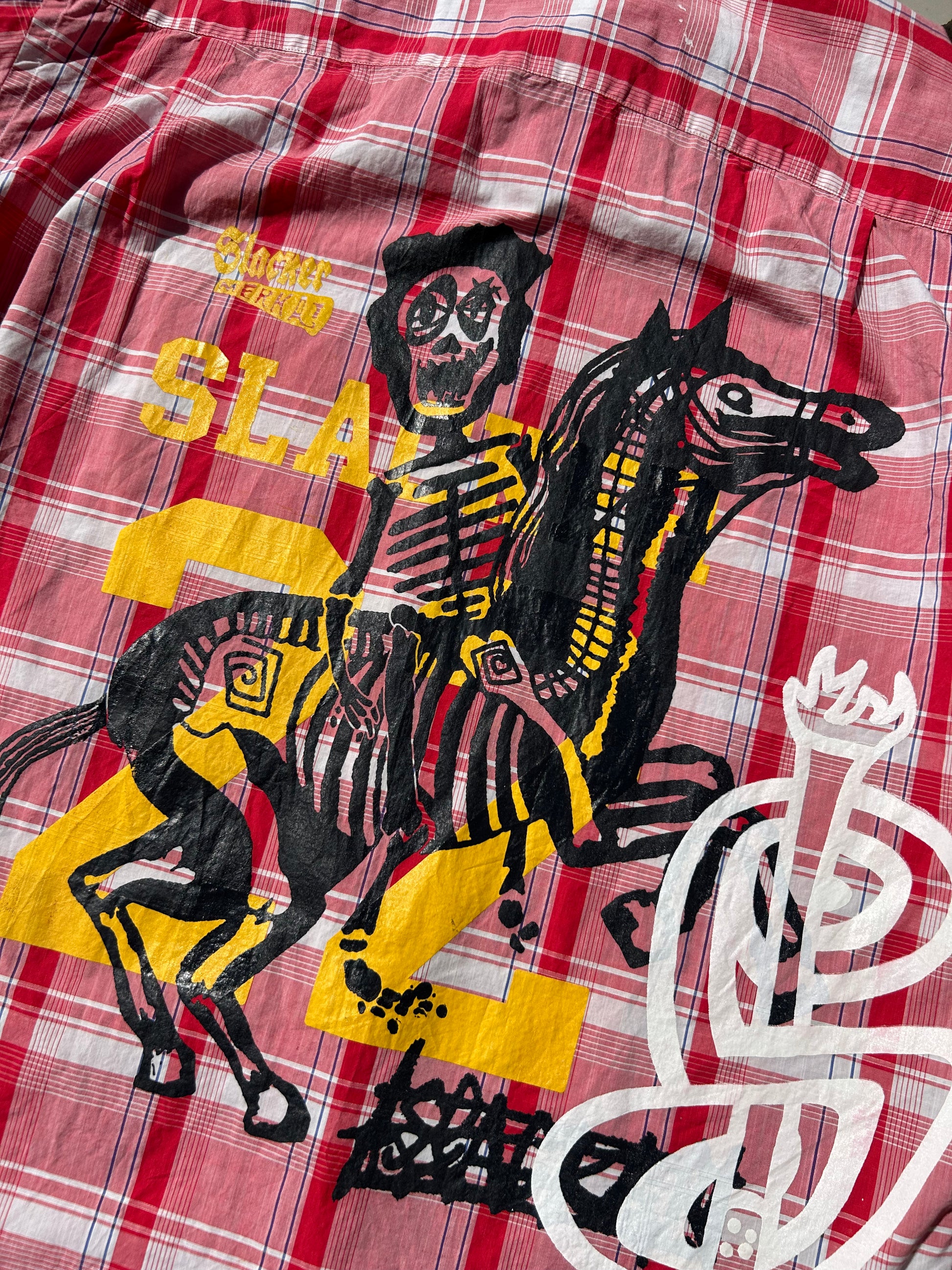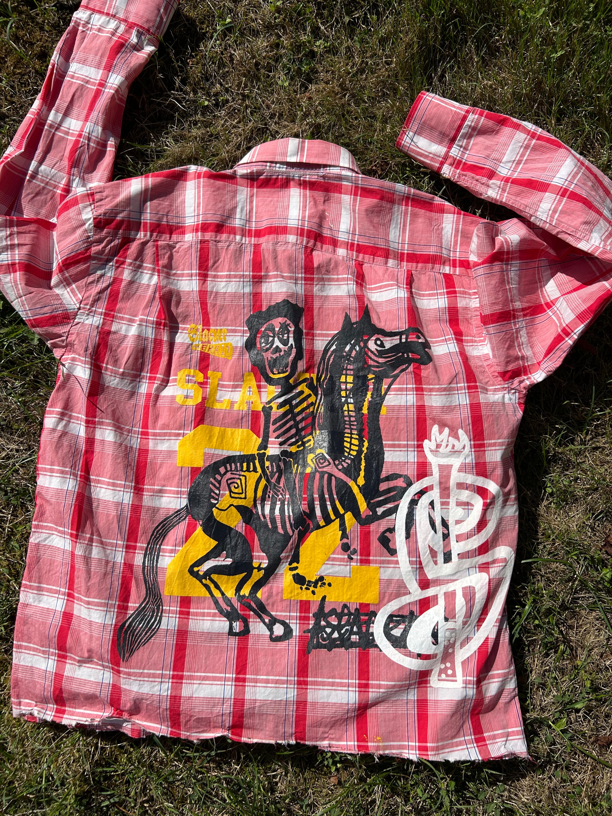 Une vraie chemise Slacker, récupérée, réinventée, sérigraphiée.