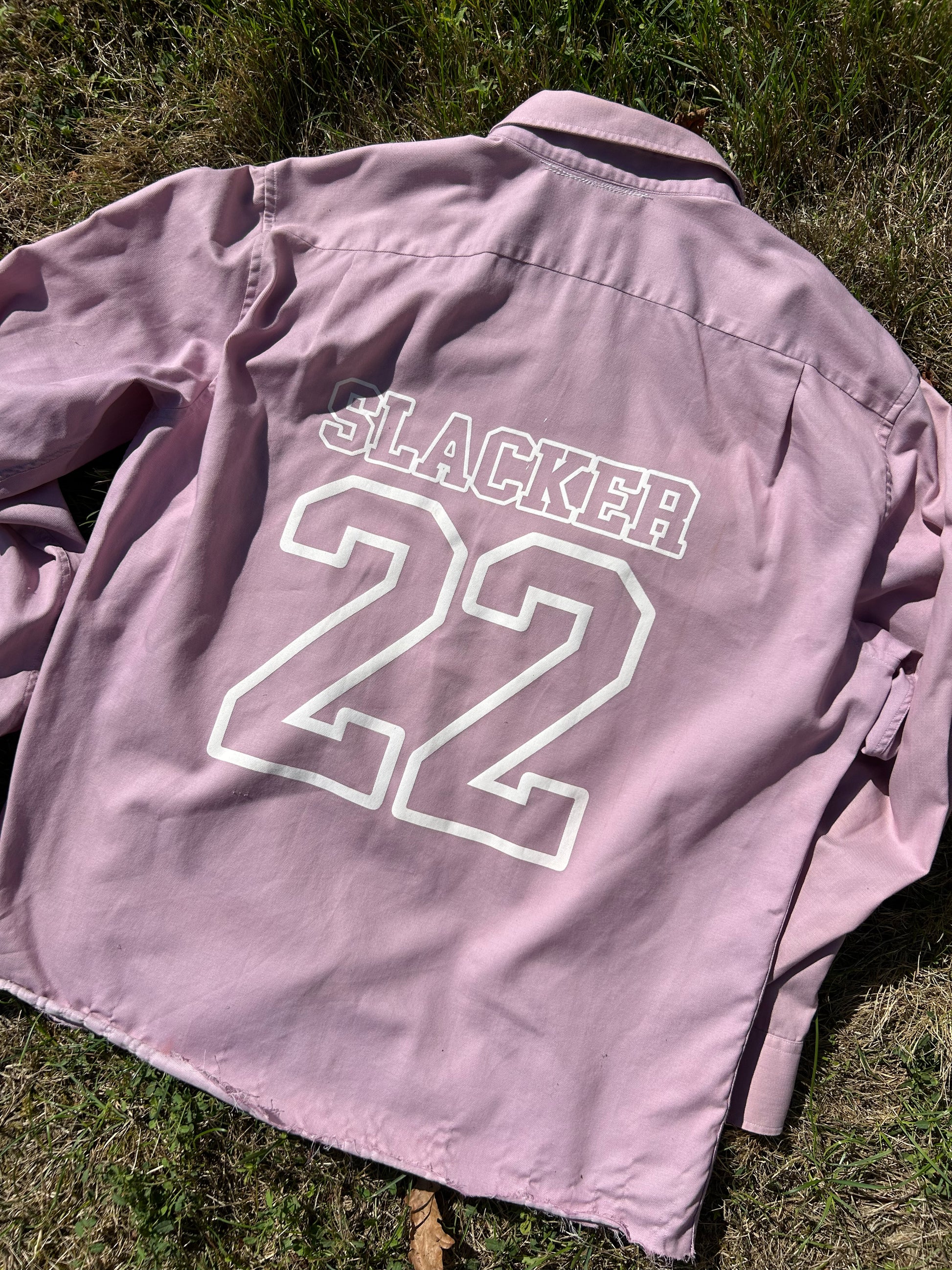 Une vraie chemise Slacker, récupérée, réinventée, sérigraphiée.