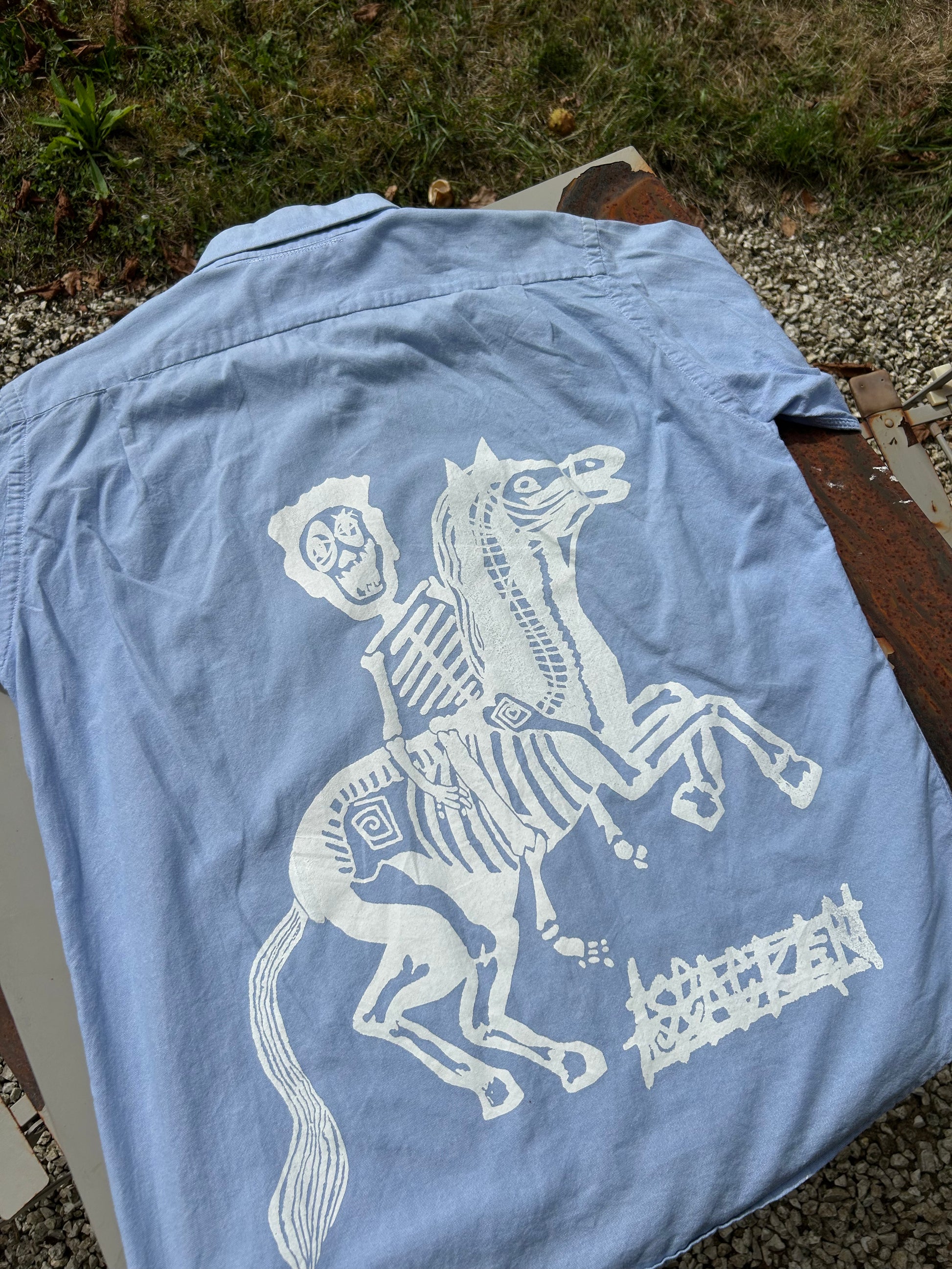 Une vraie chemise Slacker, récupérée, réinventée, sérigraphiée.