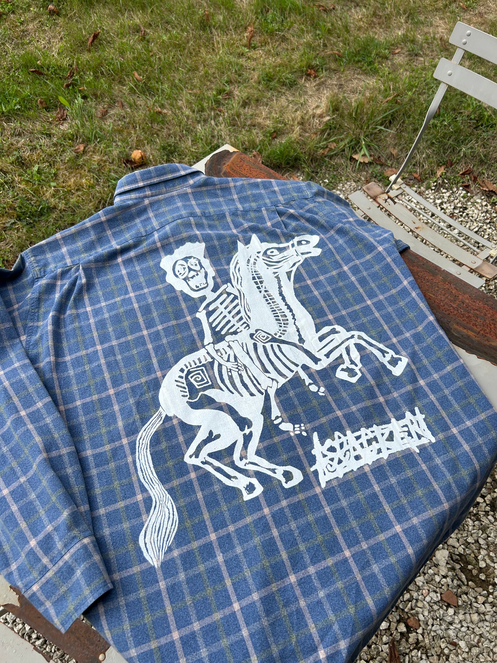 Une vraie chemise Slacker, récupérée, réinventée, sérigraphiée.