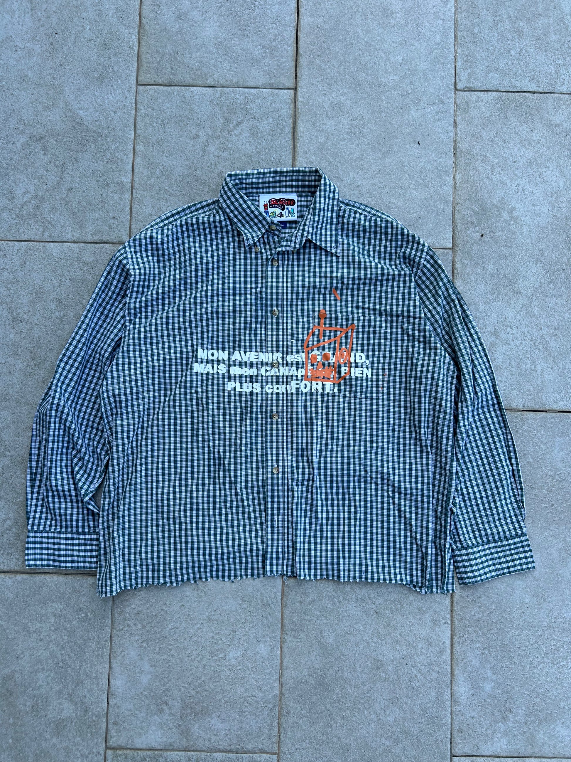 Une vraie chemise Slacker, récupérée, réinventée, sérigraphiée.
