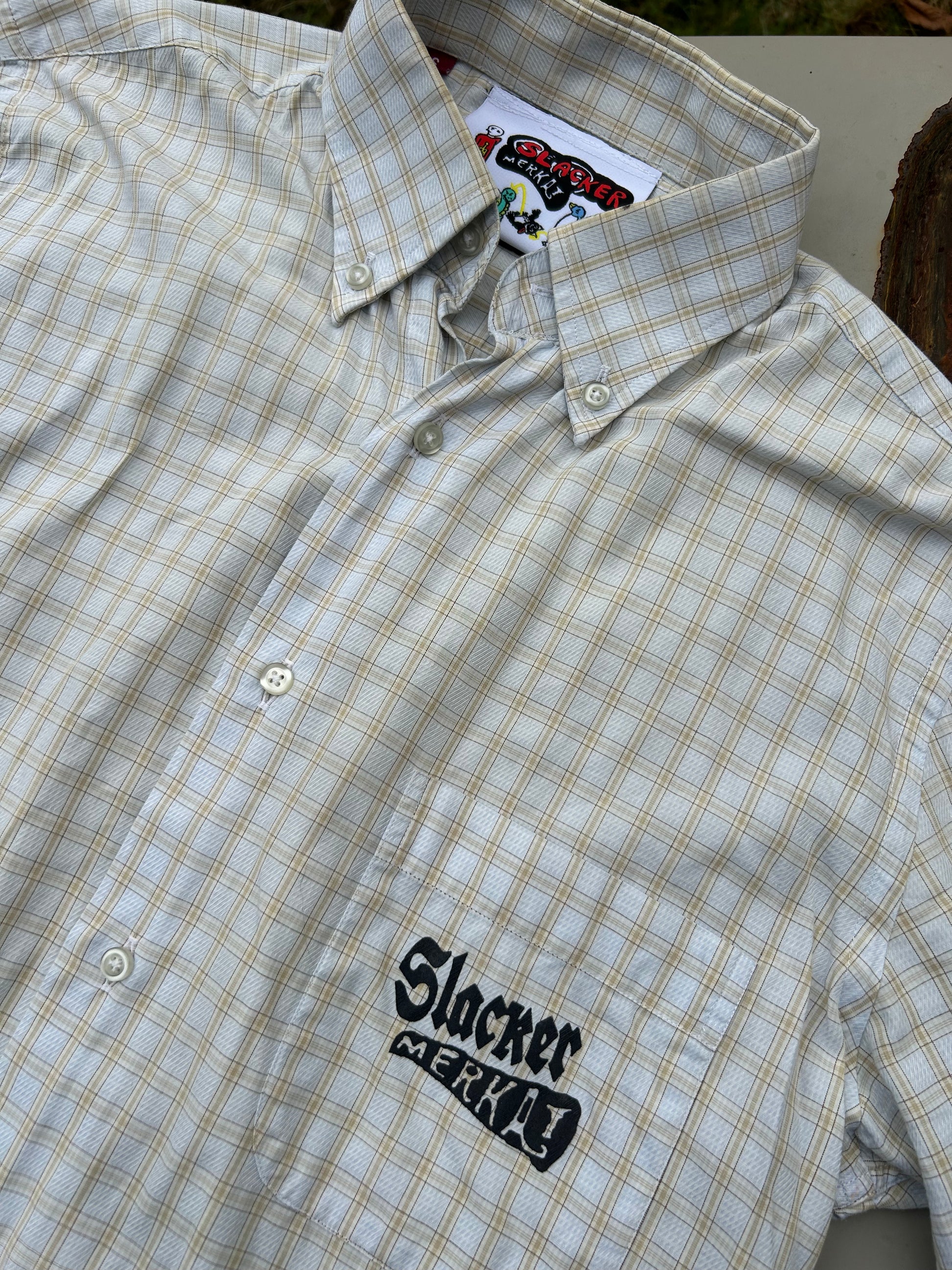 Une vraie chemise Slacker, récupérée, réinventée, sérigraphiée.