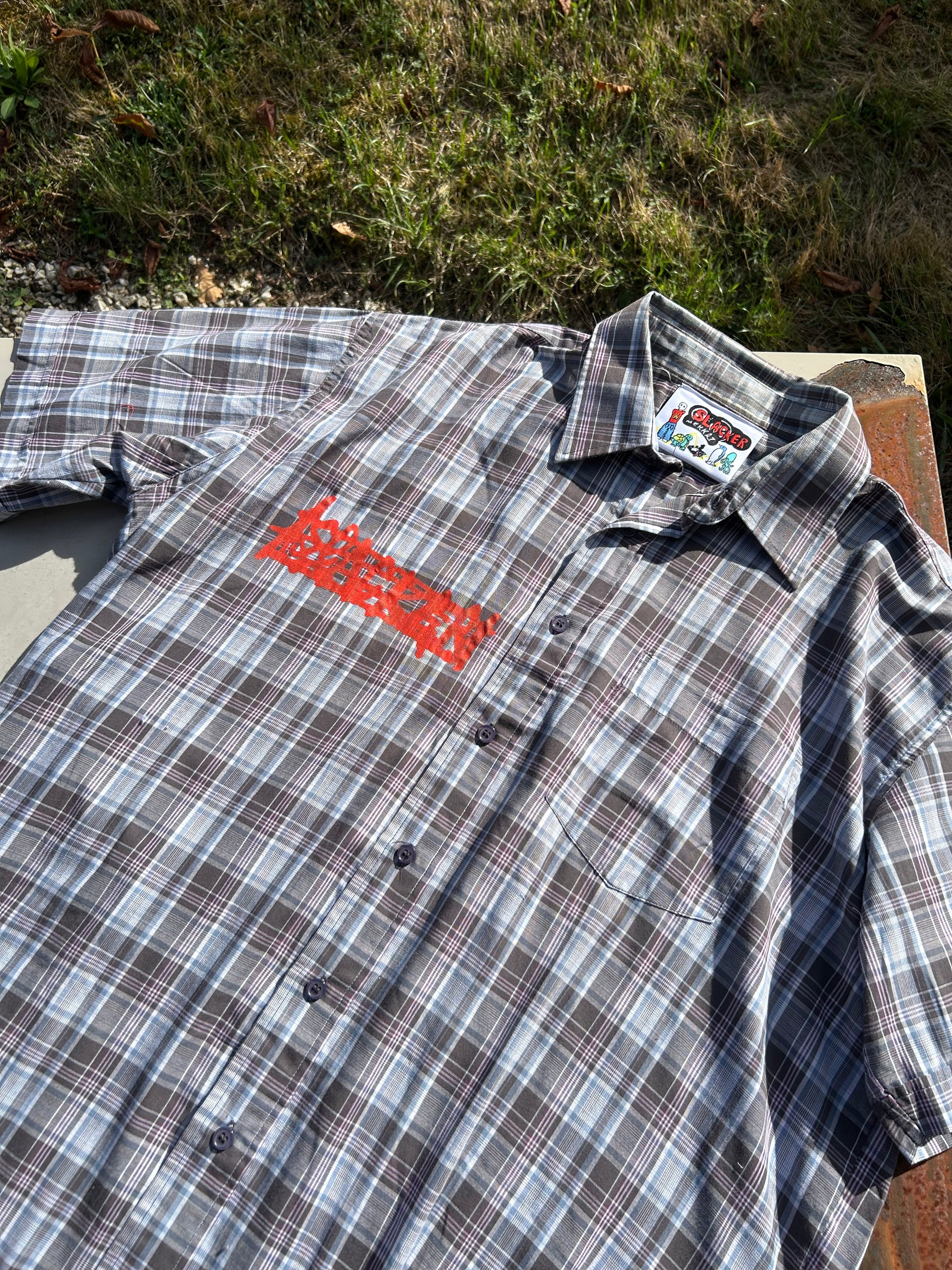 Une vraie chemise Slacker, récupérée, réinventée, sérigraphiée.