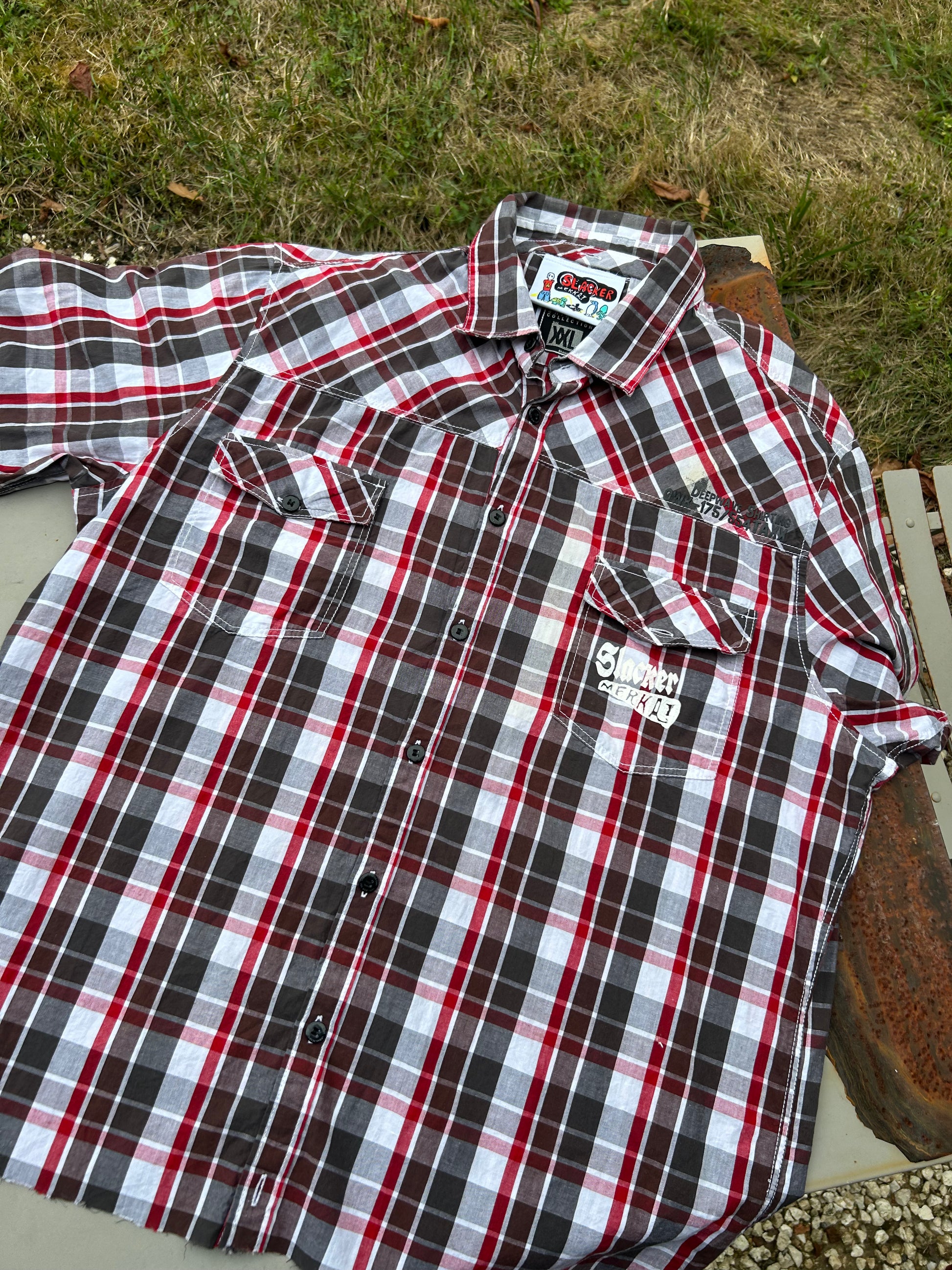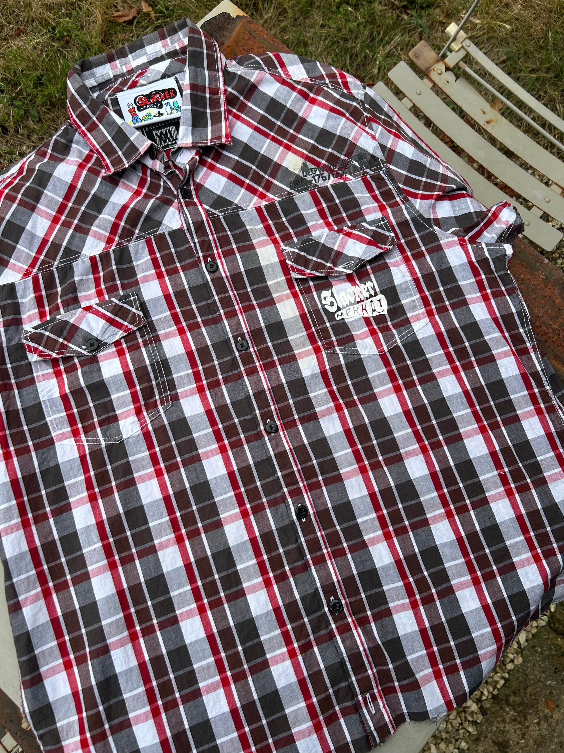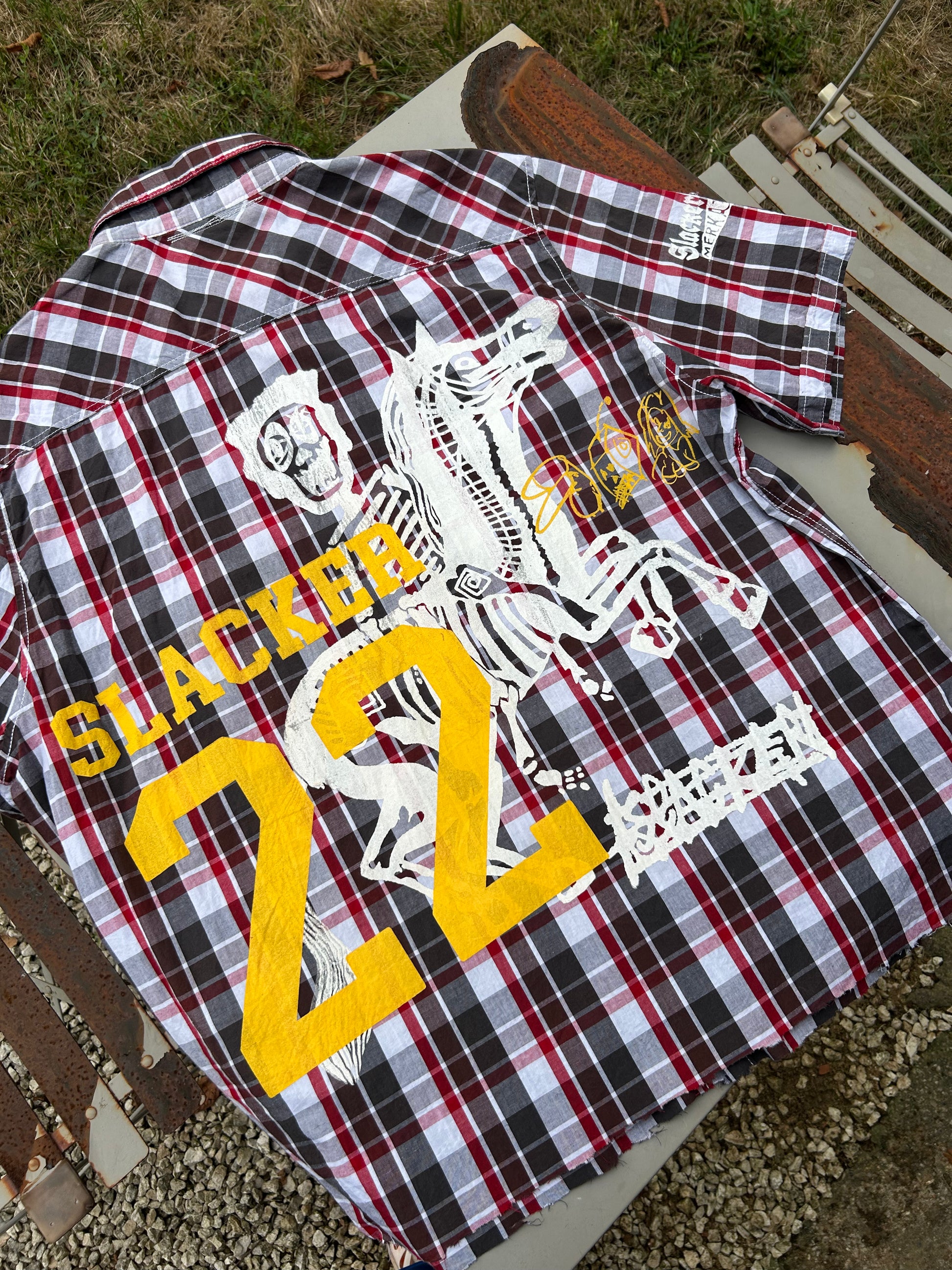 Une vraie chemise Slacker, récupérée, réinventée, sérigraphiée.