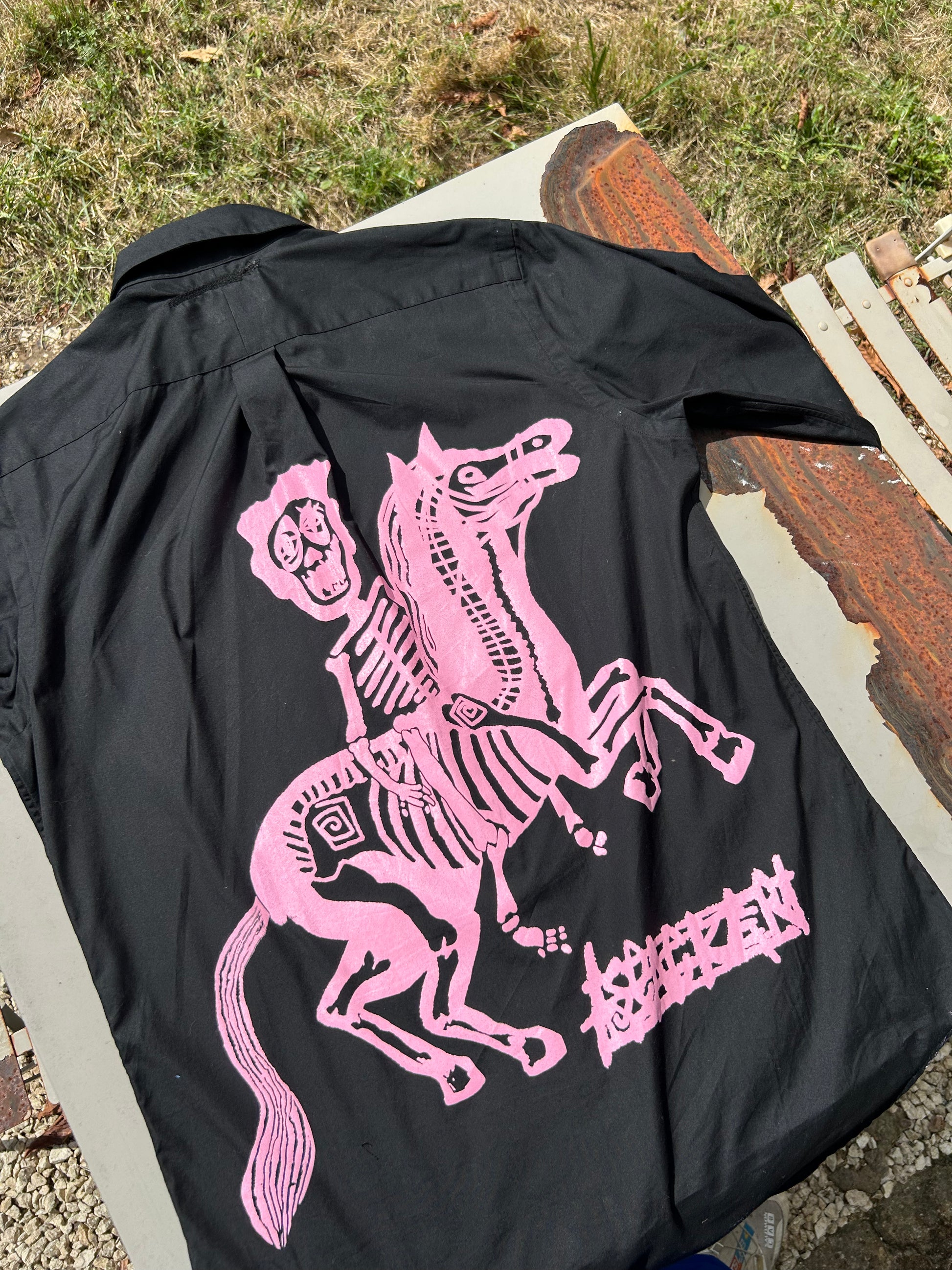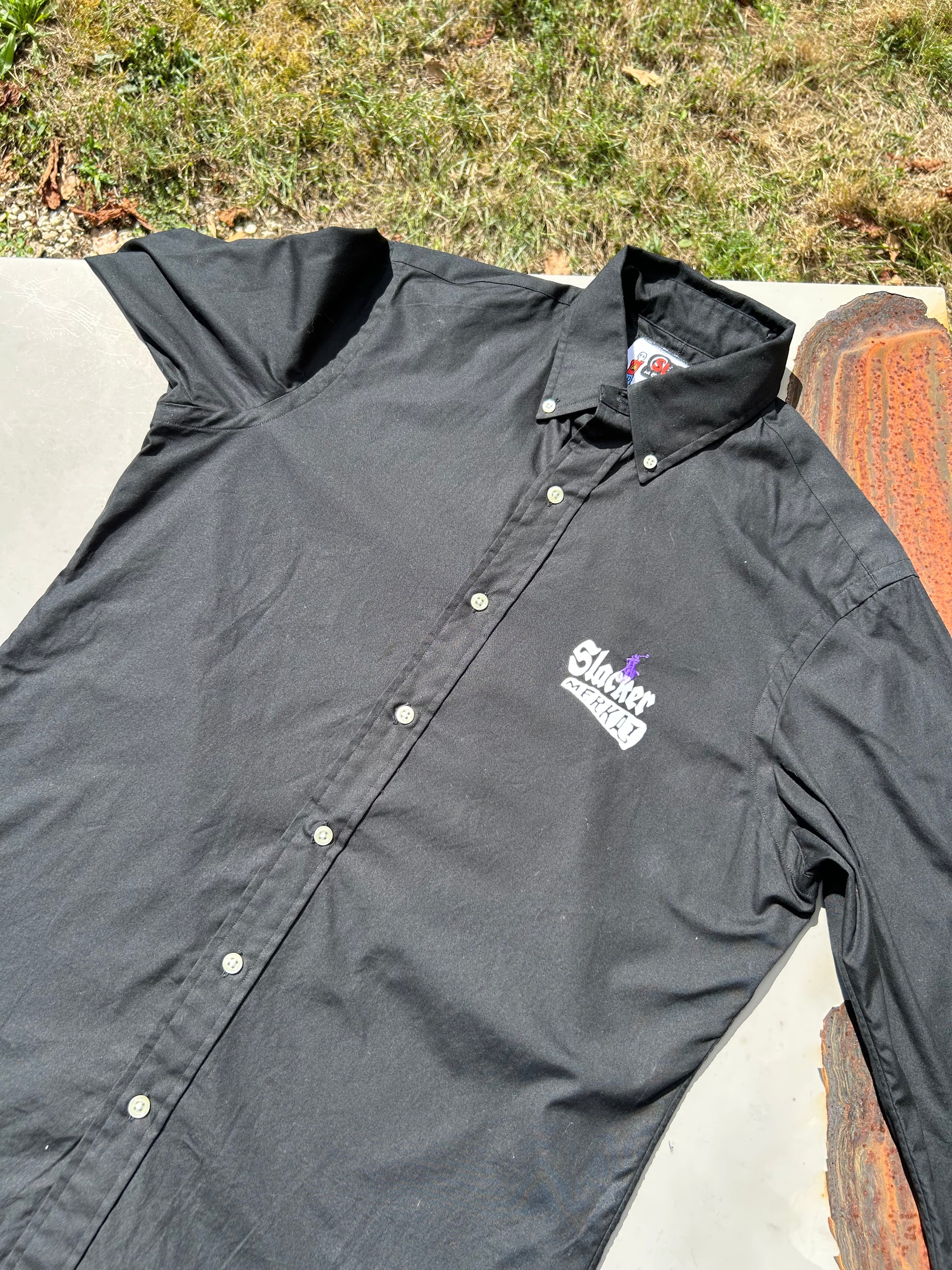 Une vraie chemise Slacker, récupérée, réinventée, sérigraphiée.