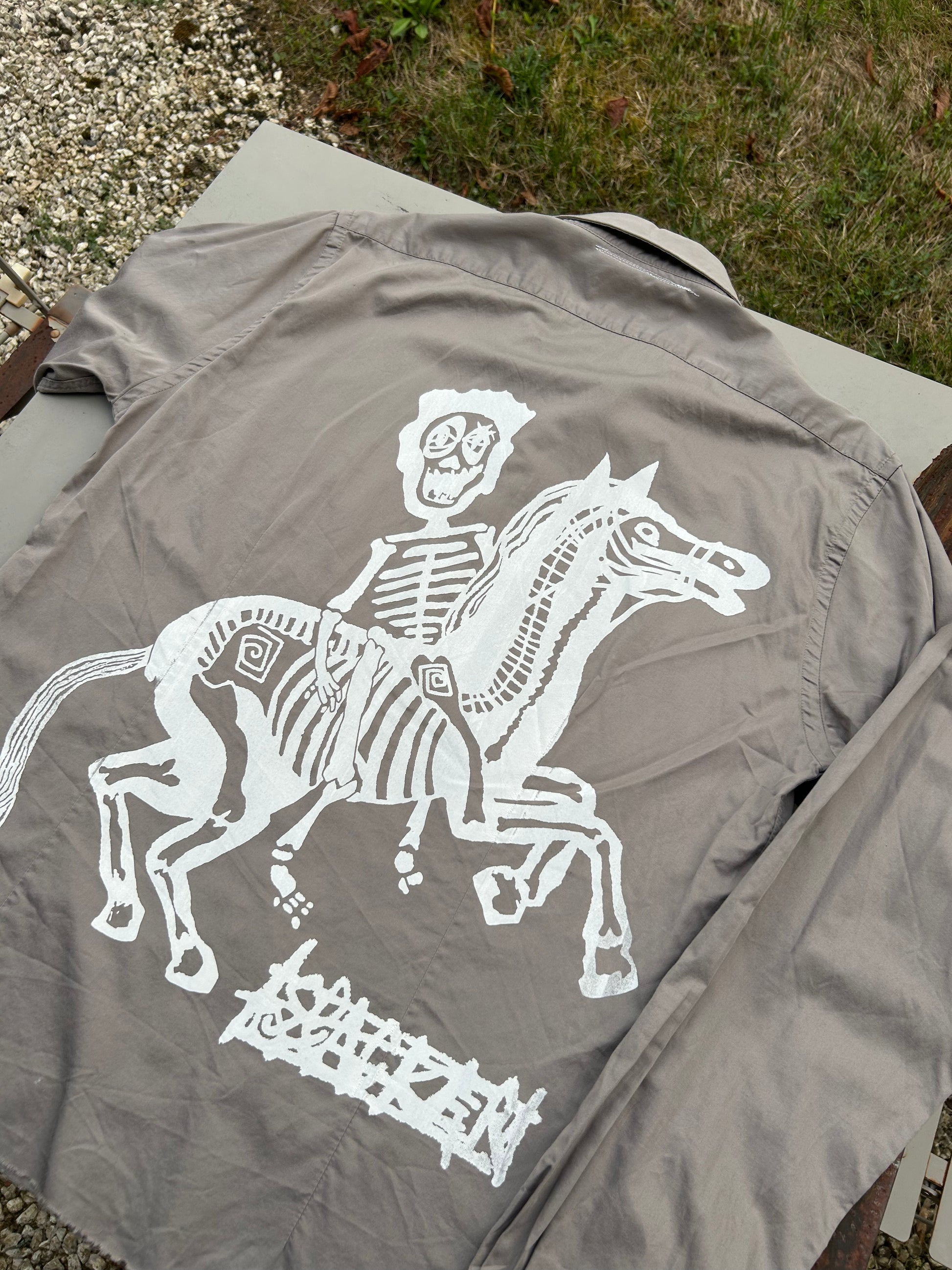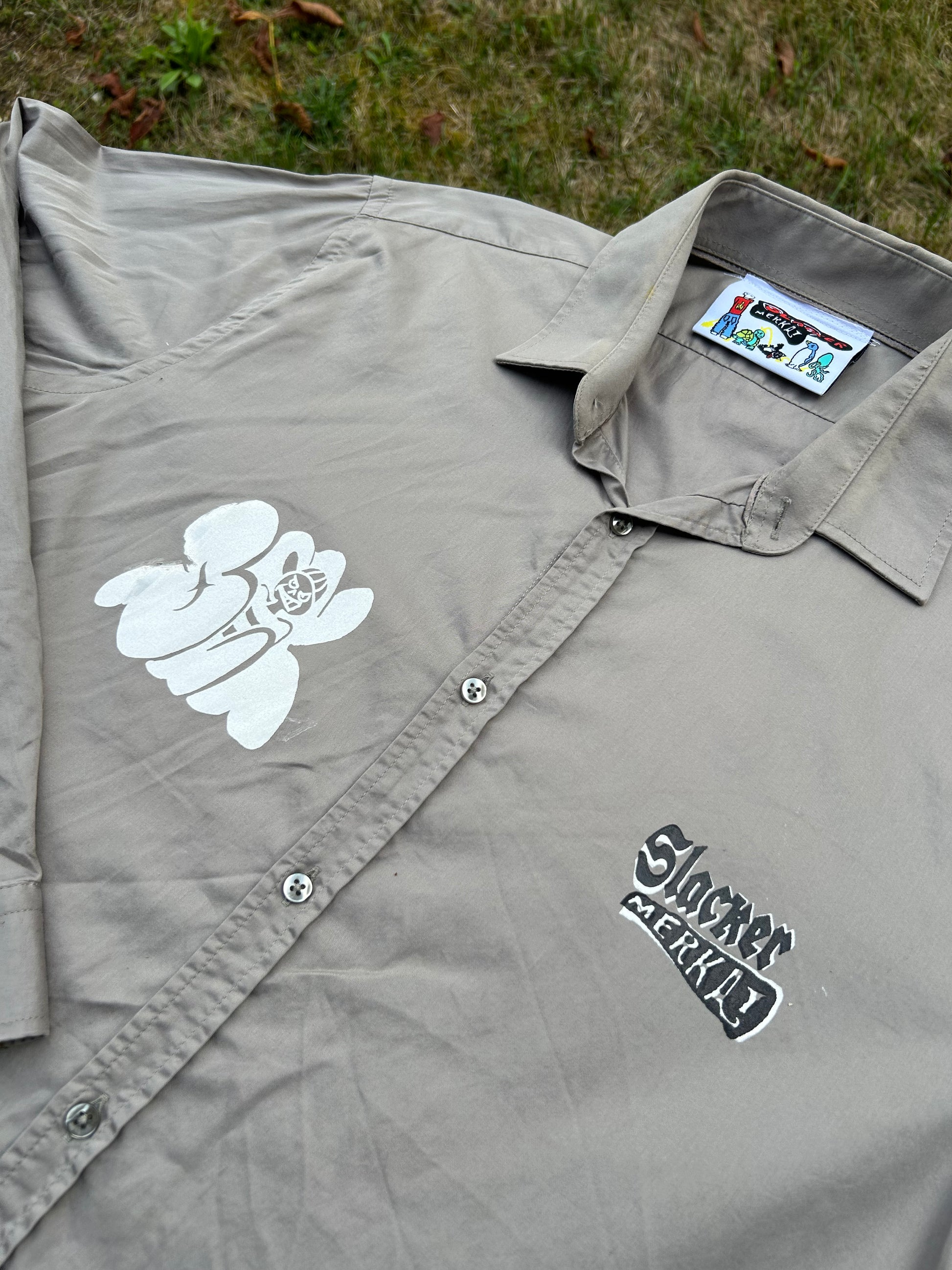 Une vraie chemise Slacker, récupérée, réinventée, sérigraphiée.