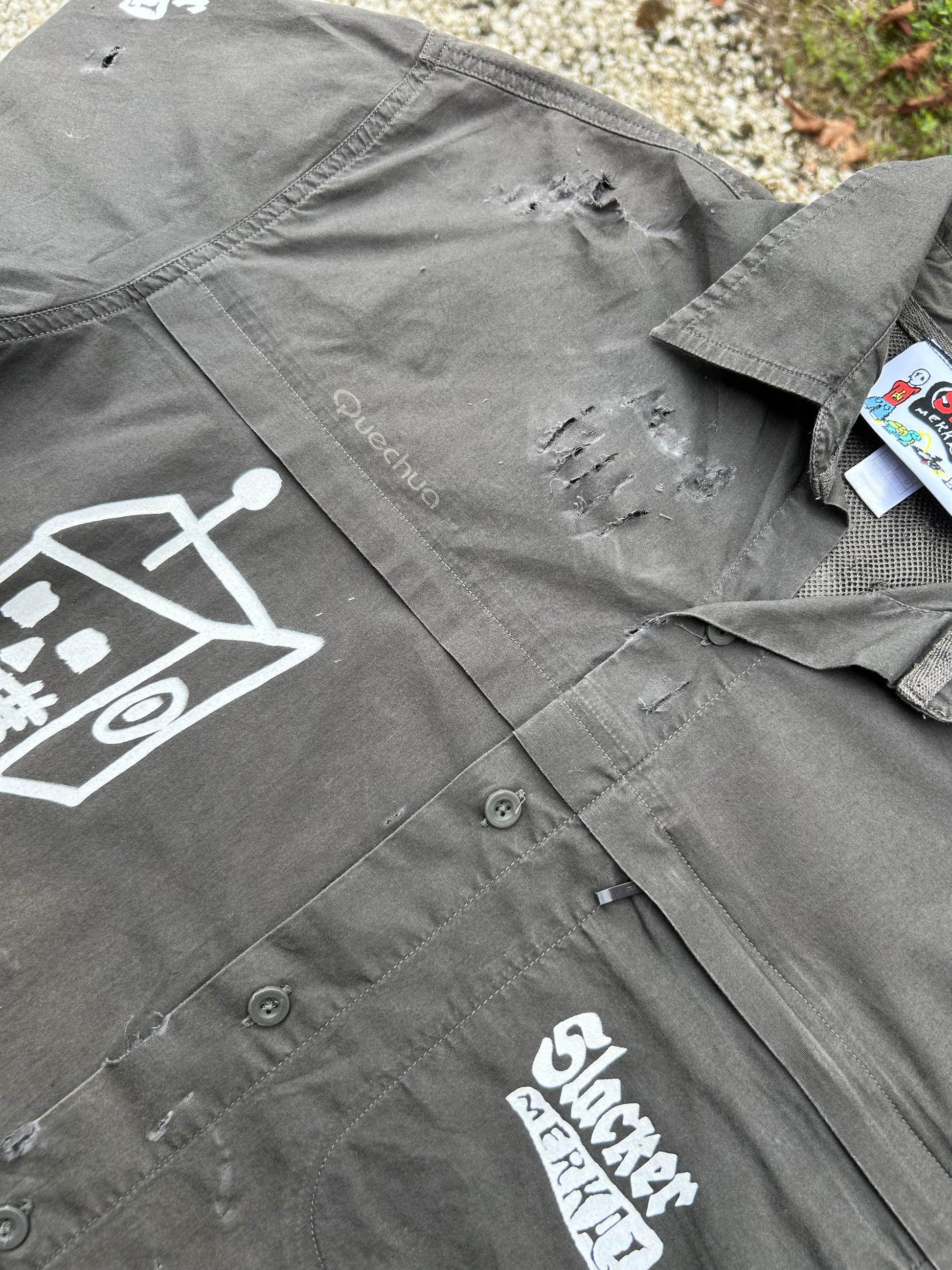 Une vraie chemise Slacker, récupérée, réinventée, sérigraphiée.
