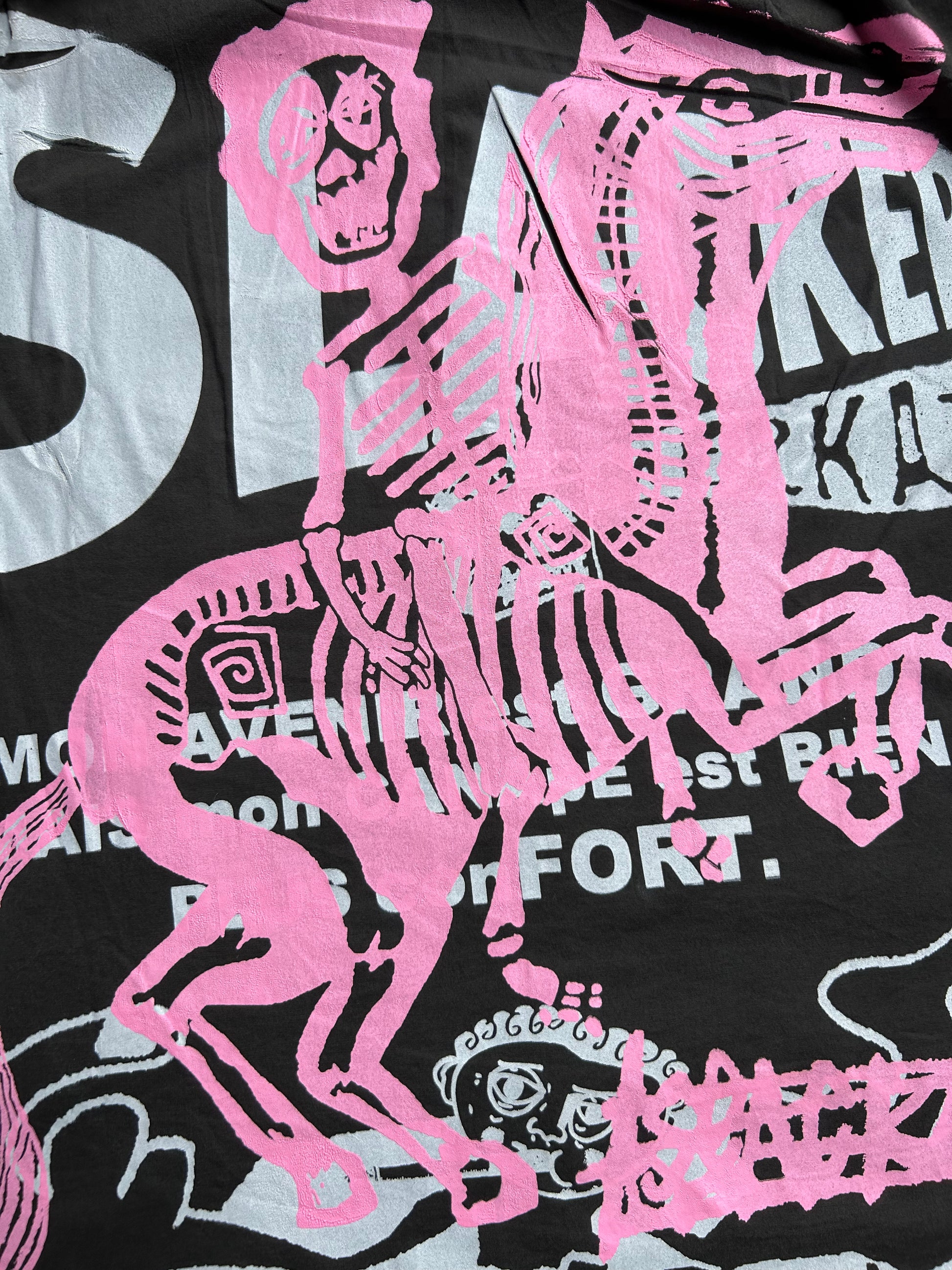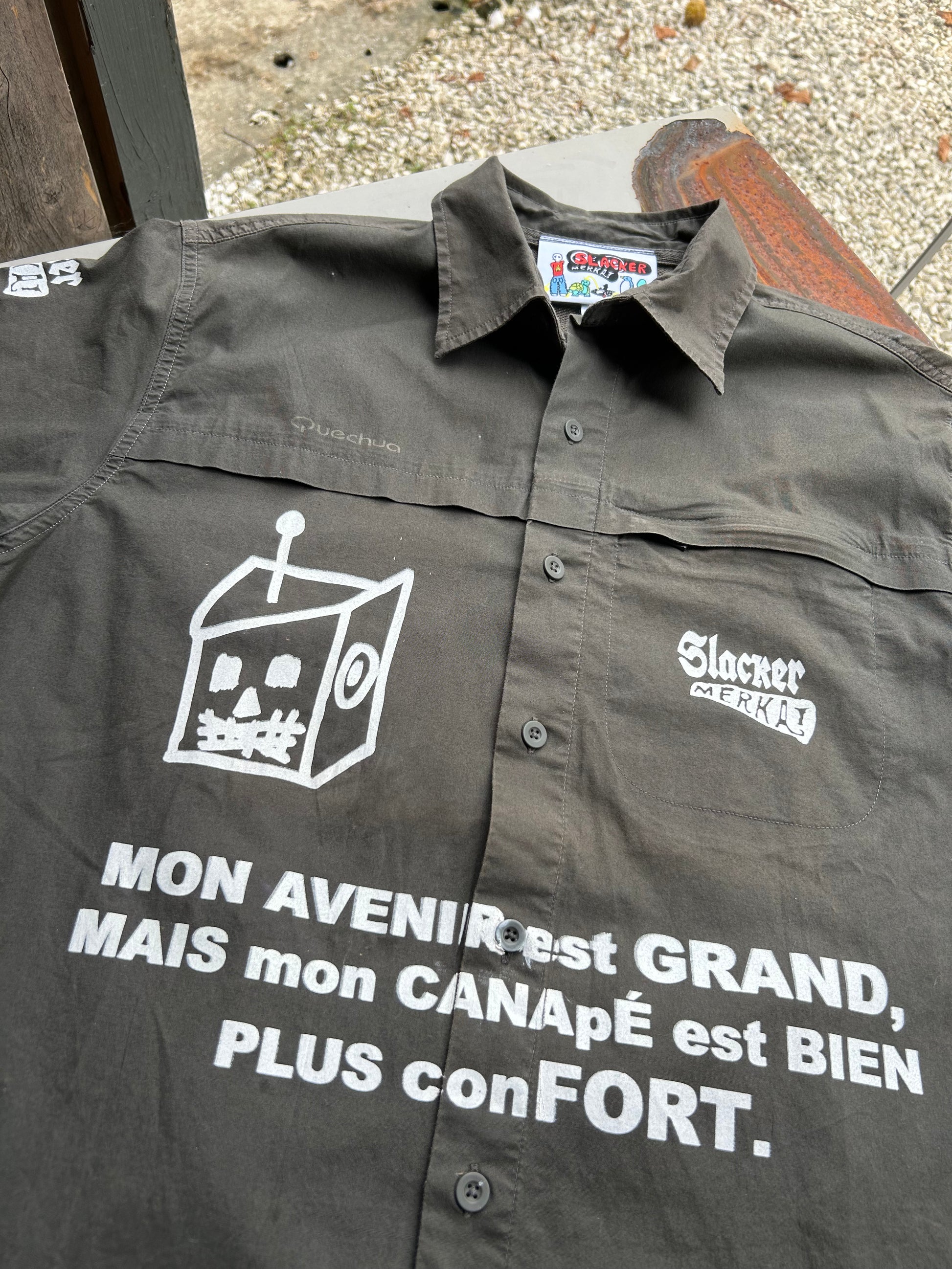 Une vraie chemise Slacker, récupérée, réinventée, sérigraphiée.
