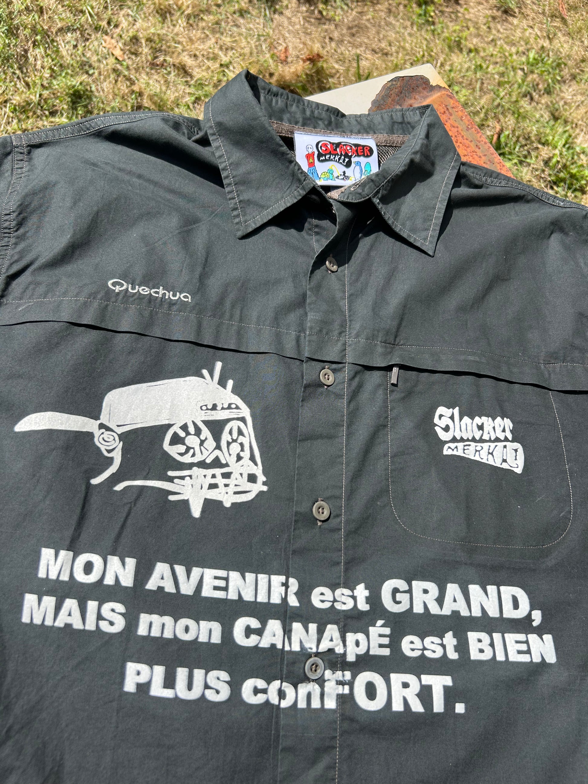 -C’est pas une chemise pour faire sérieux. C’est une pièce pour ceux qui prennent rien trop au sérieux, sauf le style.