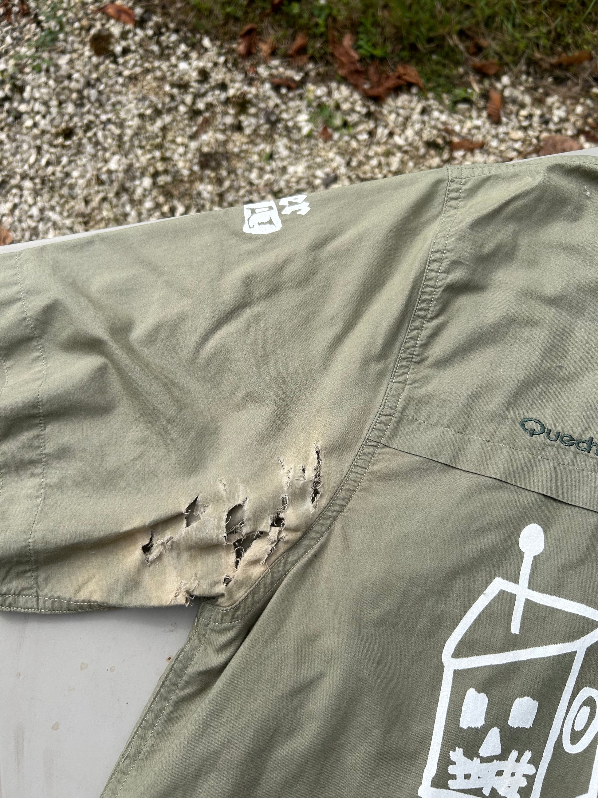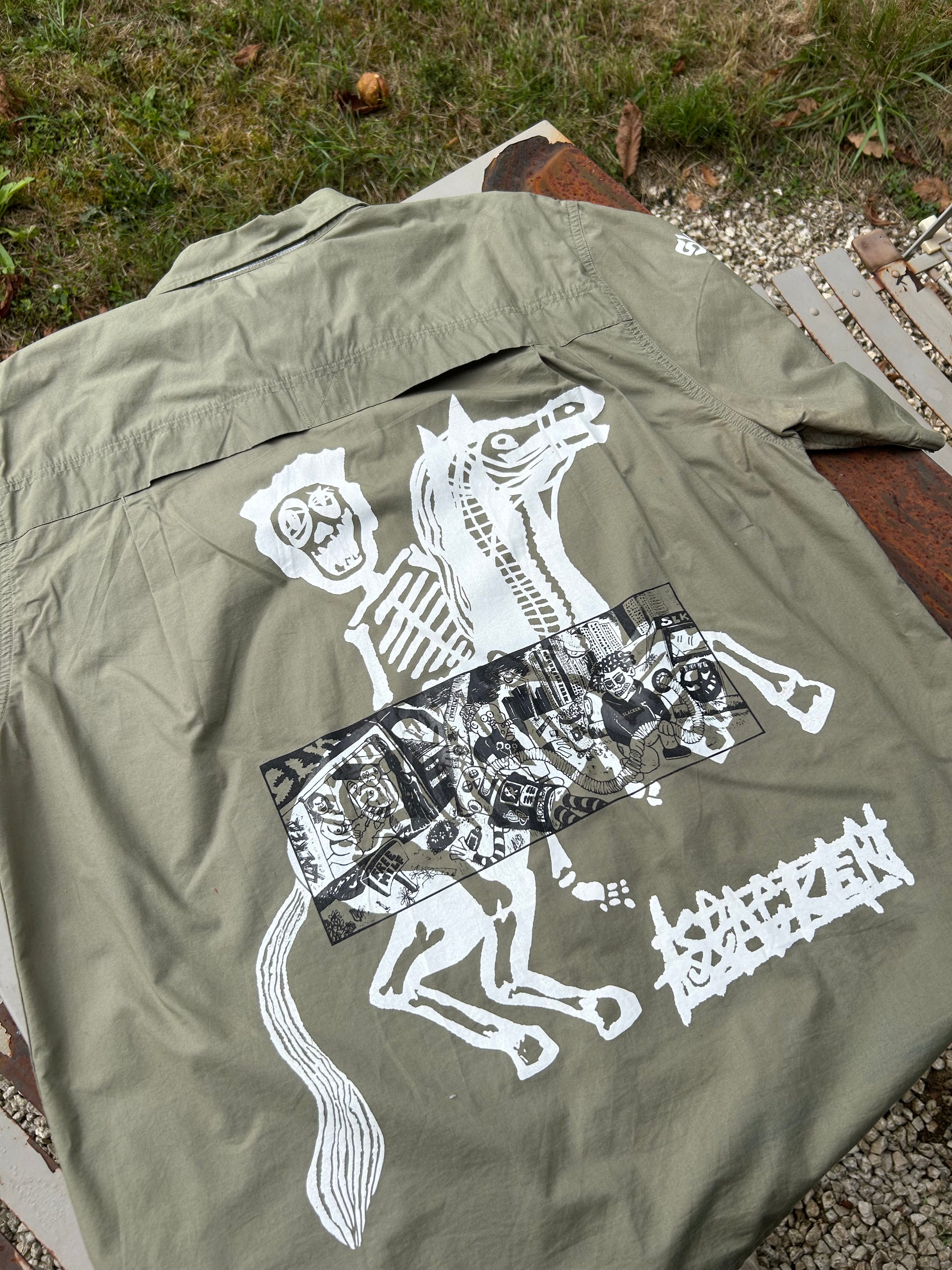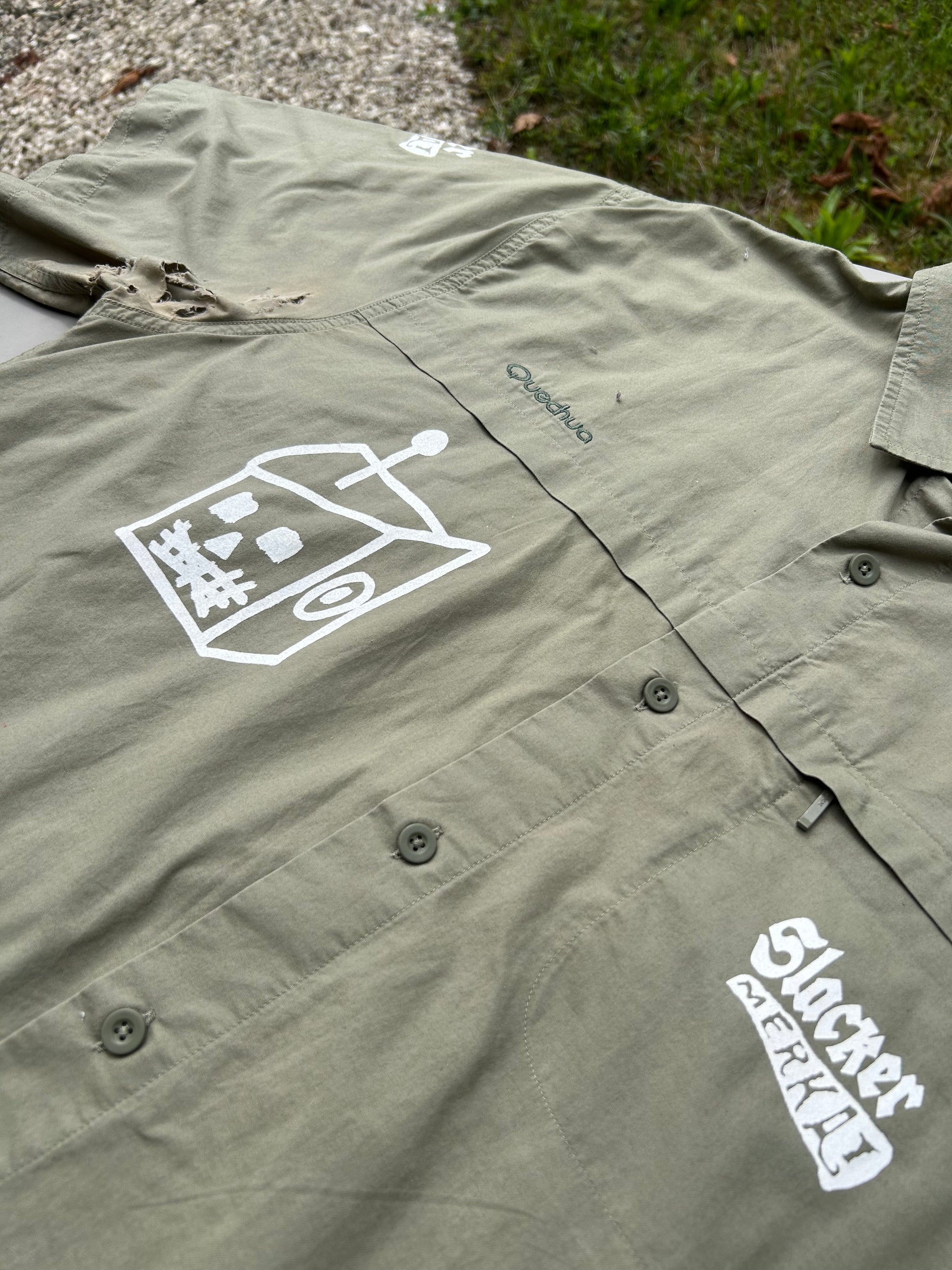 Une vraie chemise Slacker, récupérée, réinventée, sérigraphiée.