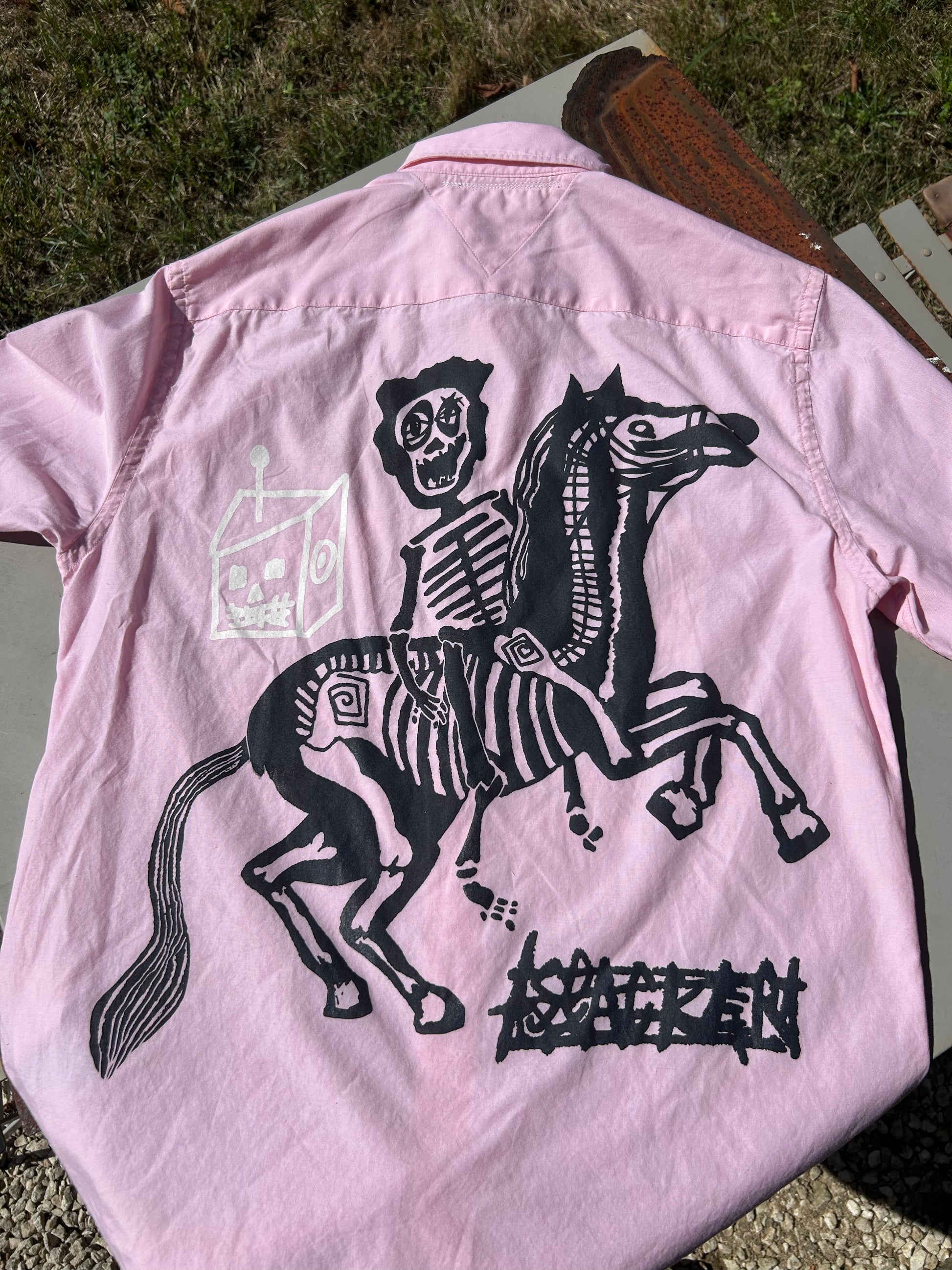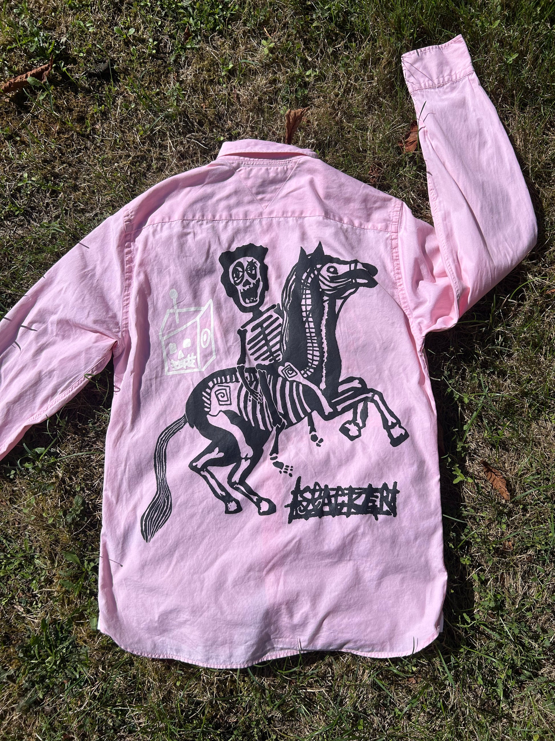 Une vraie chemise Slacker, récupérée, réinventée, sérigraphiée.
