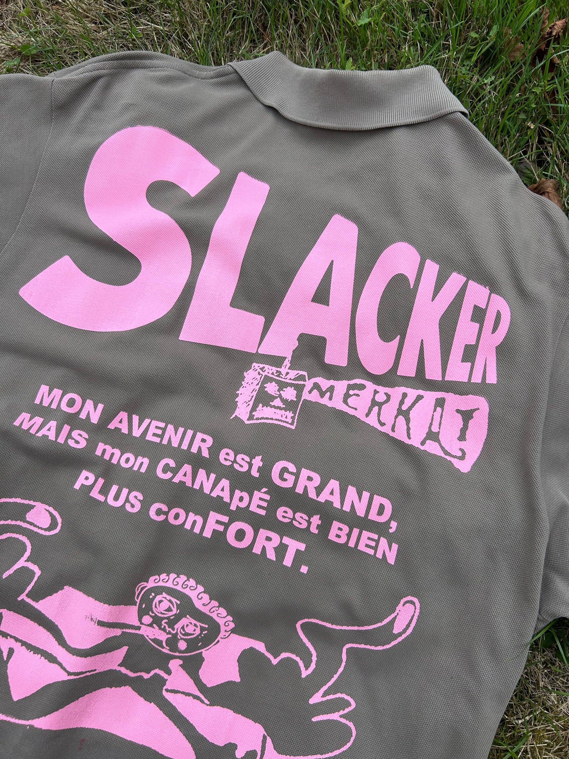 Un vrai POLO Slacker, récupérée, réinventée, sérigraphiée.